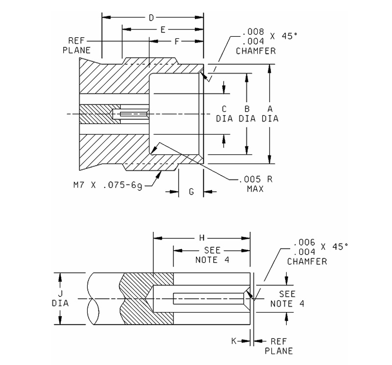 1. Panjang thread adalah dari akhir kacang gandingan, 4.37 mm (.172inch) minimum, 0.63 mm (.025 inci) ± 0.25 mm (.010 inci).