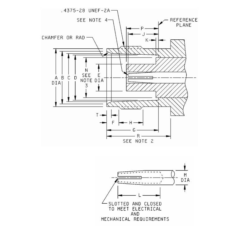 4. ID untuk memenuhi VSWR apabila dikawinkan dengan pin diameter .052 inci (1.32 mm)/054 (1.37 mm).